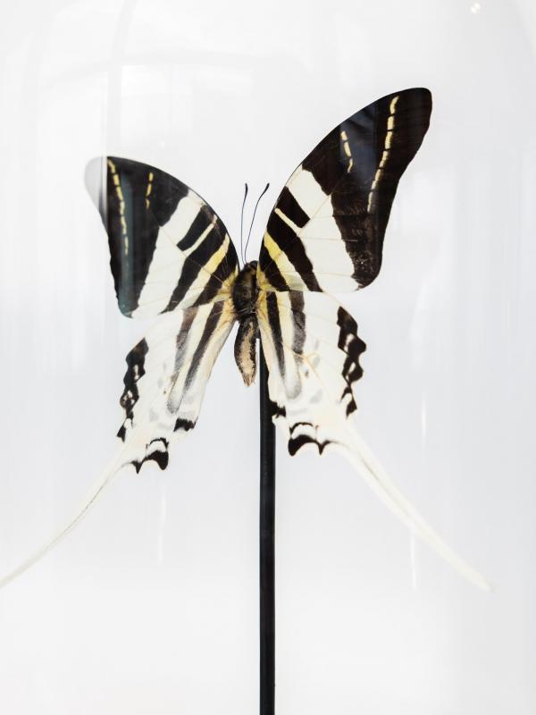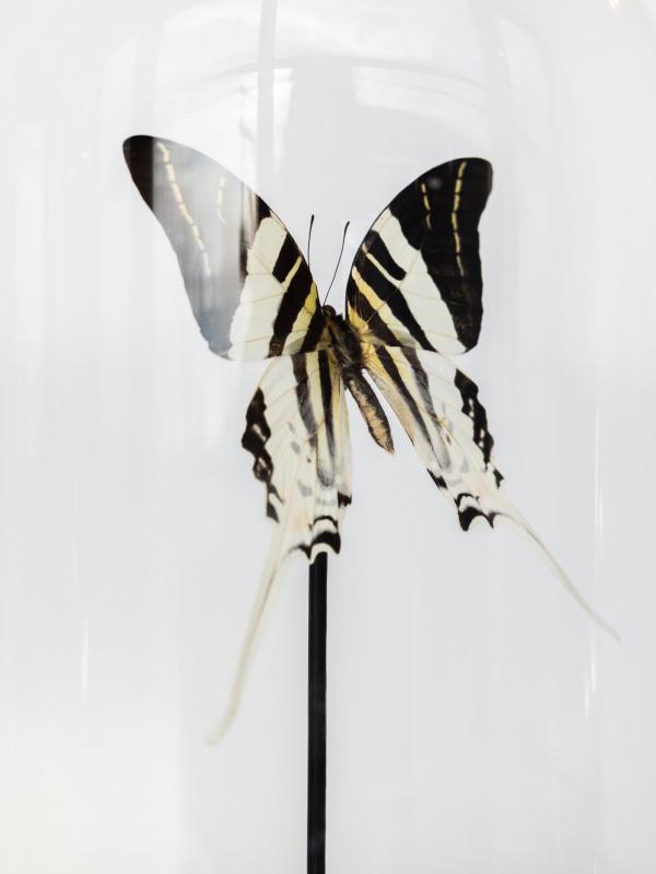 Deze echte vlinder is met uiterste zorg en respect opgebaard onder een glazen stolp. Elk exemplaar is uniek en benadrukt de kwetsbare schoonheid van de natuur. De vlinder wordt zorgvuldig gepresenteerd, waardoor de details van de vleugels en natuurlijke kleuren volledig tot hun recht komen.